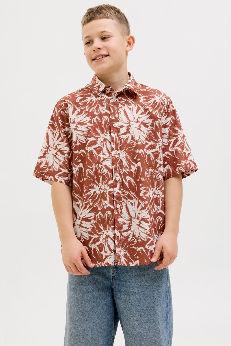 Camisa loose - Terracotta e branco - Jack & Jones Junior