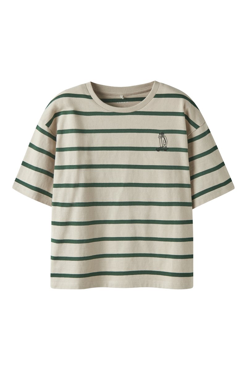 T-shirt em algodão biológico - Cru e verde - Name It Kids