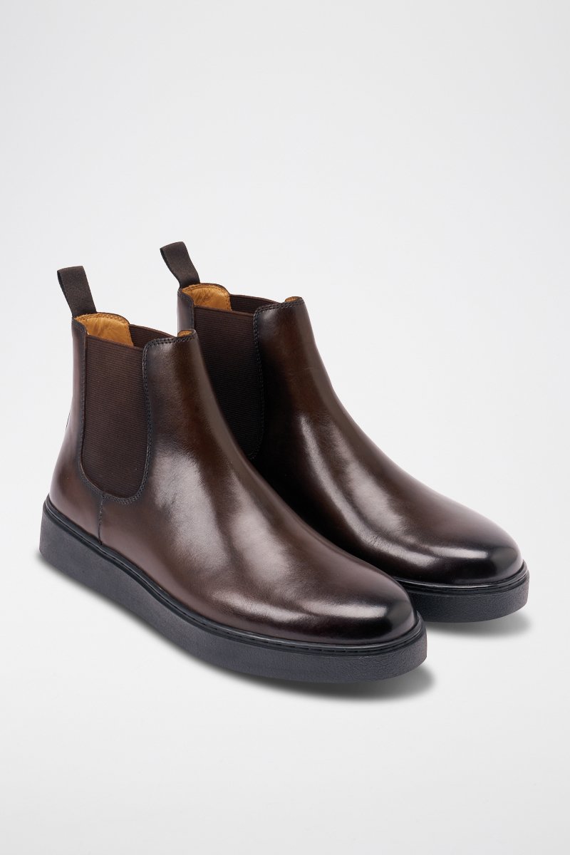 Boots Chelsea regular em couro - Castanho