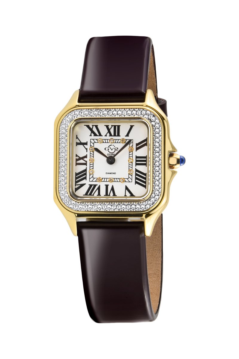 Relógio de quartzo em couro, banhado ião ouro amarelo e diamantes Milan