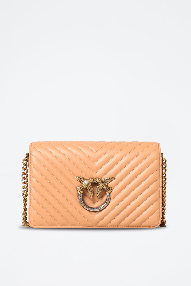 Mala de tiracolo de couro de carneiro Love Click Classic - Castanho-claro