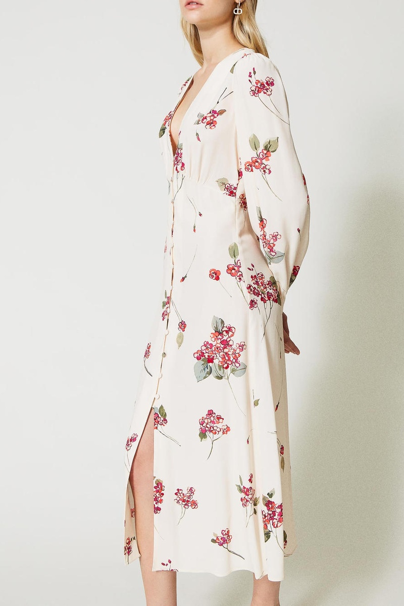 Vestido midi de mangas compridas abotoáveis.