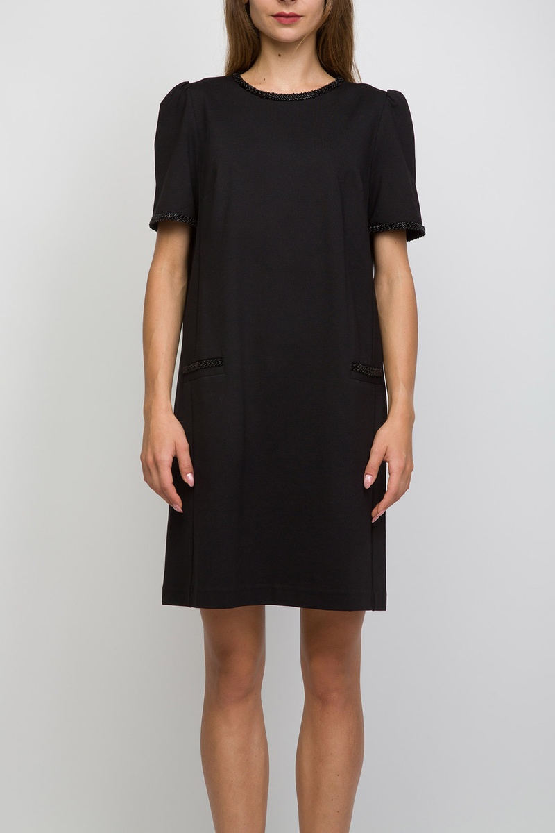 Pérolas decorativas no decote, nas mangas e nos bolsos.