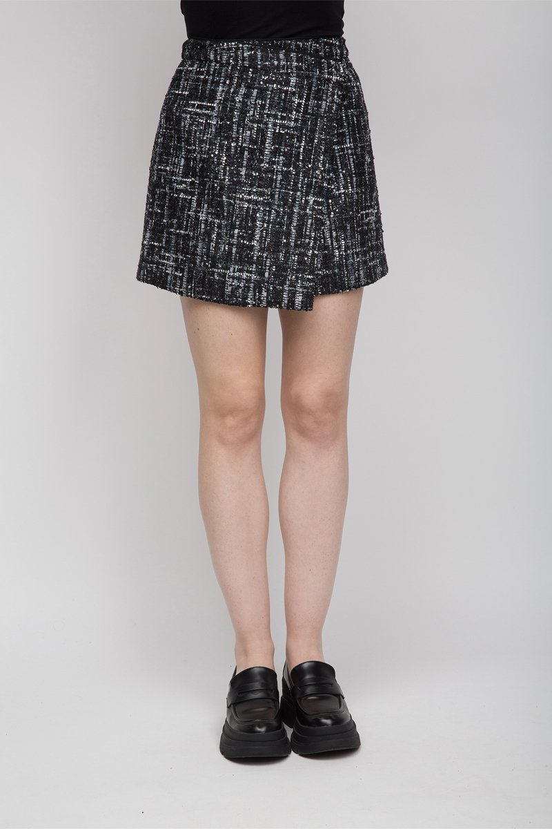 Saia traçada de cintura alta - Preto