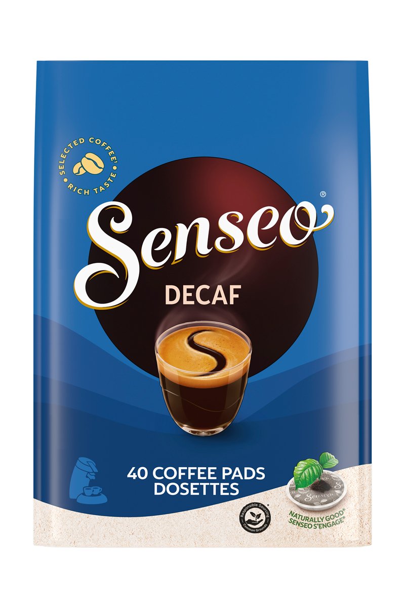 O café Senseo® Descafeinado é uma mistura perfumada e equilibrada de grãos arábica e robusta descafeinado com torrefação, com espuma delicada.