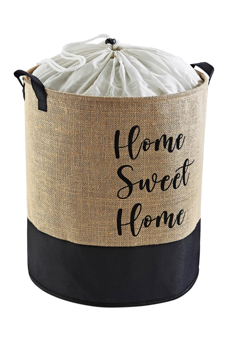 Cesto de roupa em juta.