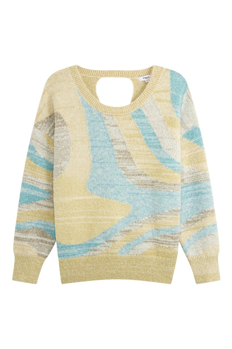 Composição: 63% poliéster reciclado, 19% fios metálicos, 15% acrílico, 2% lã e 1% elastano