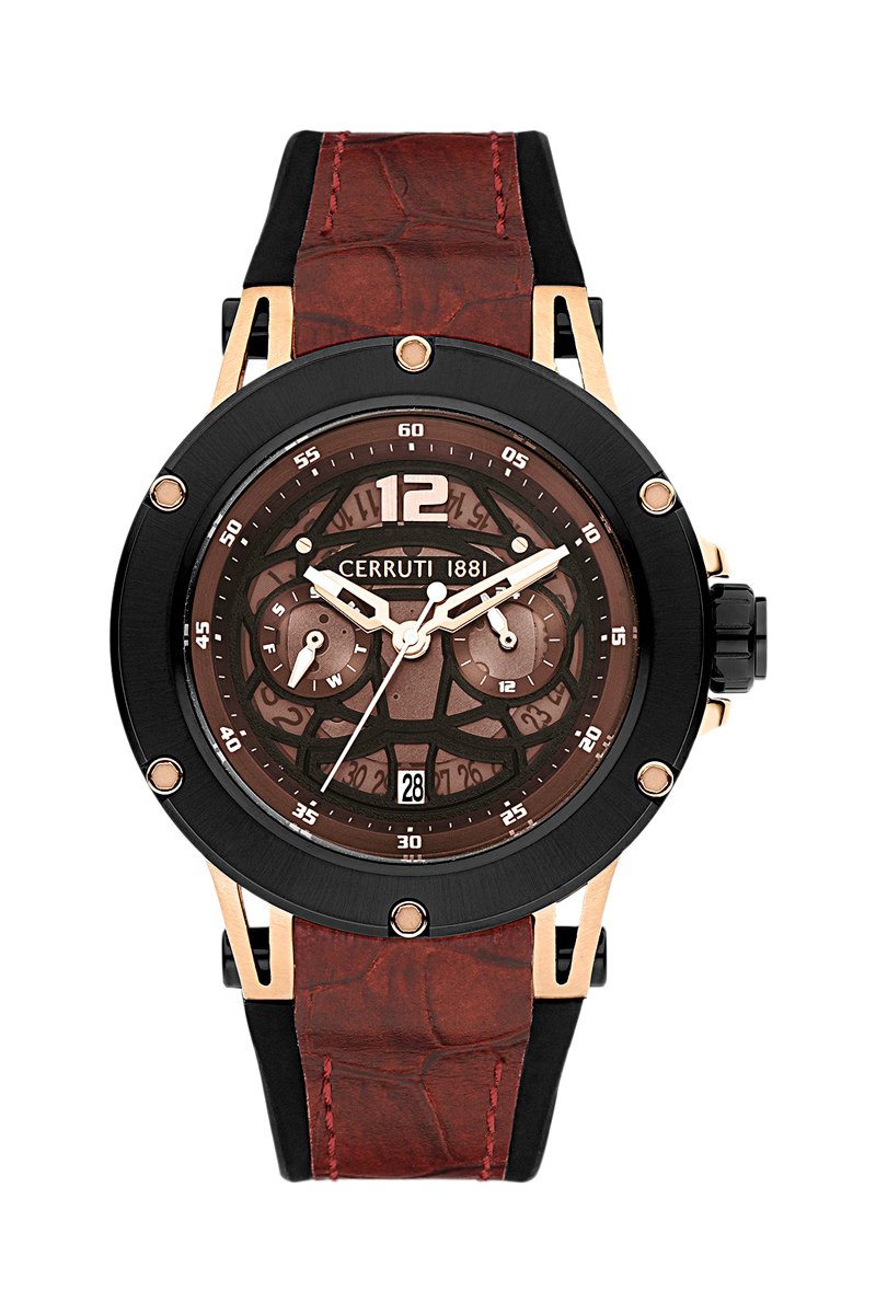Relógio de quartzo em silicone e couro Valletri - Bordô e preto
