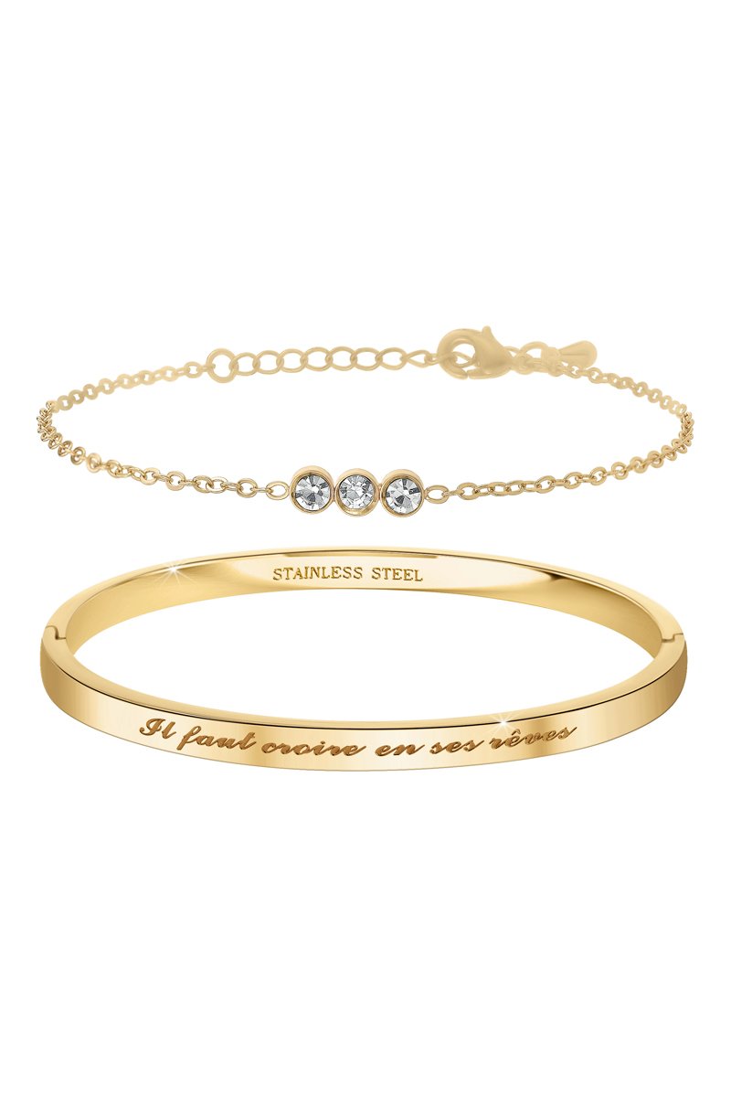 Pulseiras e pulseira rígida "Il faut croire en ses rêves" banhadas a ouro amarelo fino