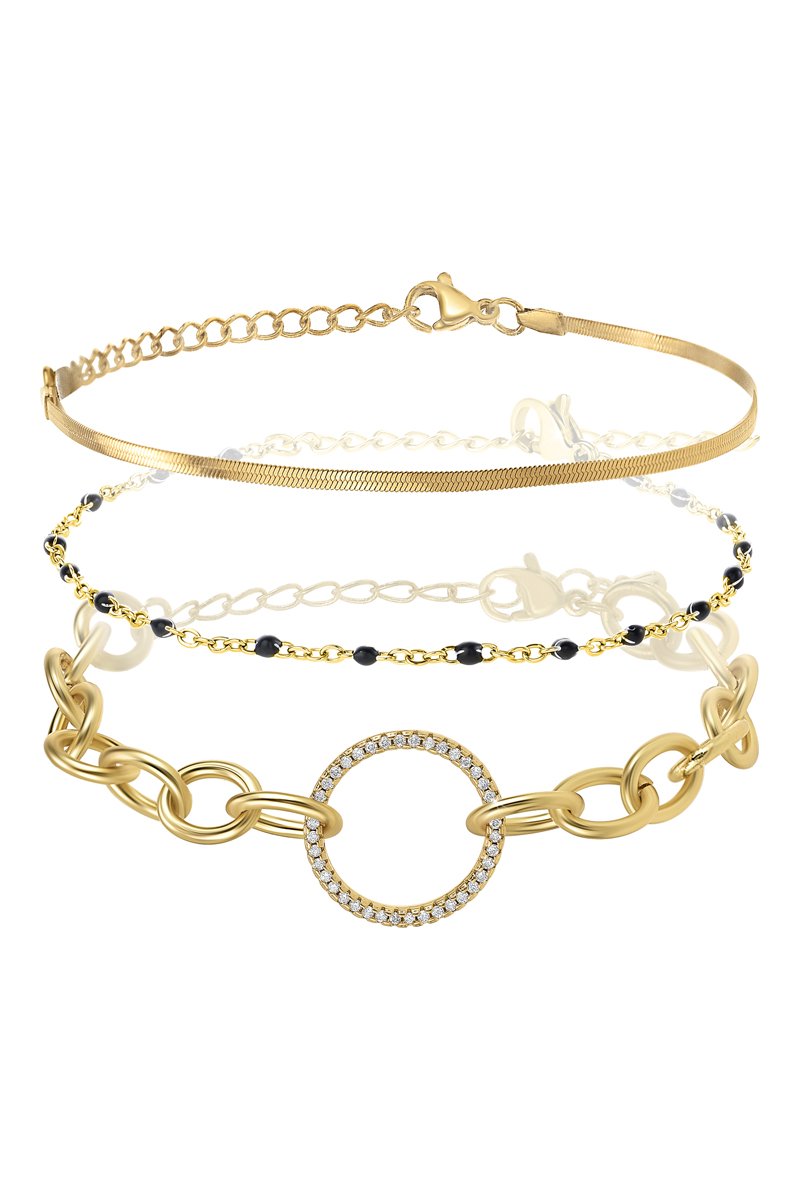 3 pulseiras banhadas a ouro amarelo fino com cristais Swarovski® e pérolas de imitação.