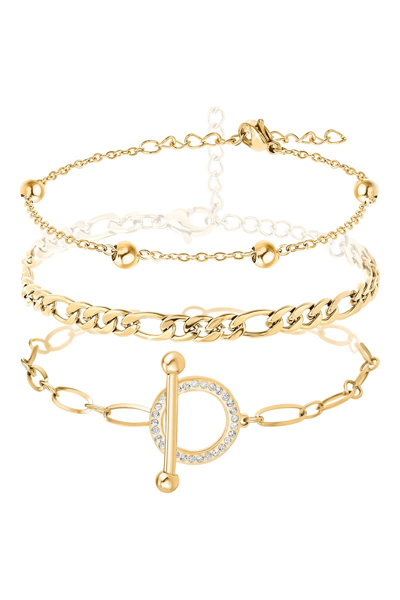 3 pulseiras banhadas a ouro amarelo fino e cristais e com cristais Swarovski®.