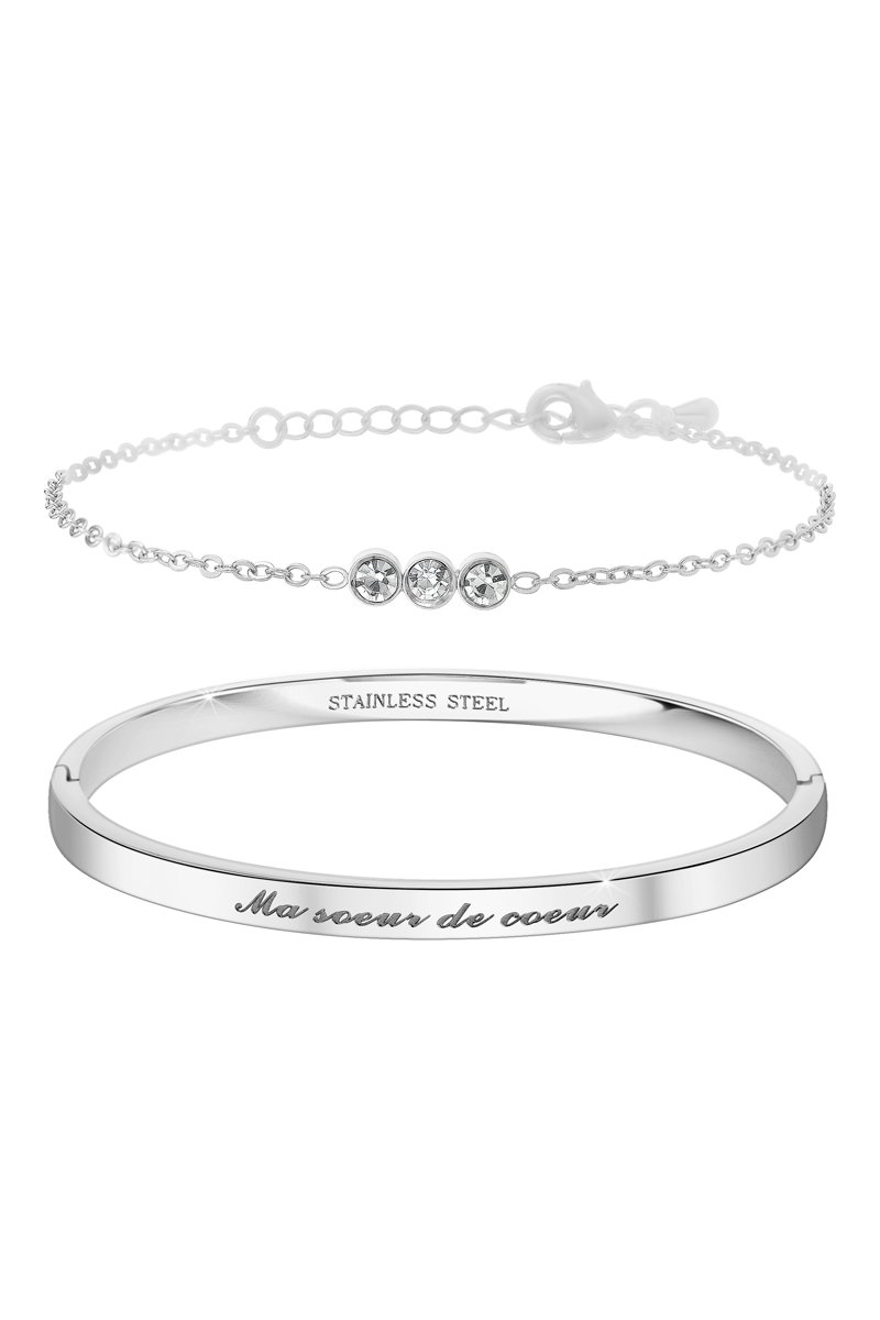 Pulseira e pulseira rígida "Ma sœur de cœur” - Prateado