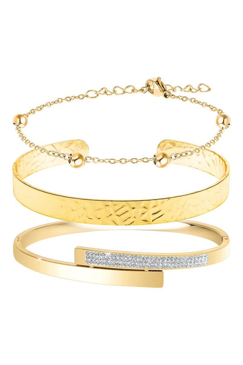 2 pulseiras rígidas e 1 pulseira banhada a ouro fino amarelo