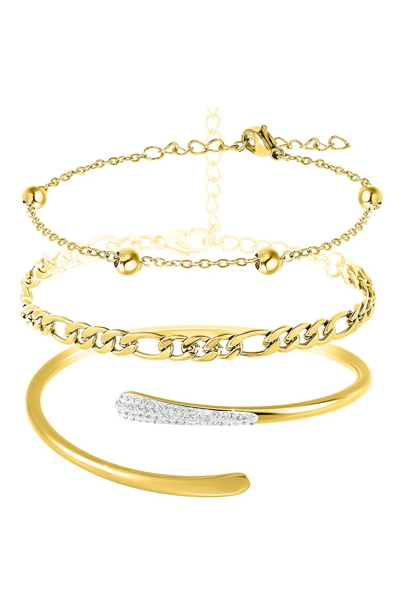 2 pulseiras e 1 pulseira rígida banhada a ouro fino amarelo