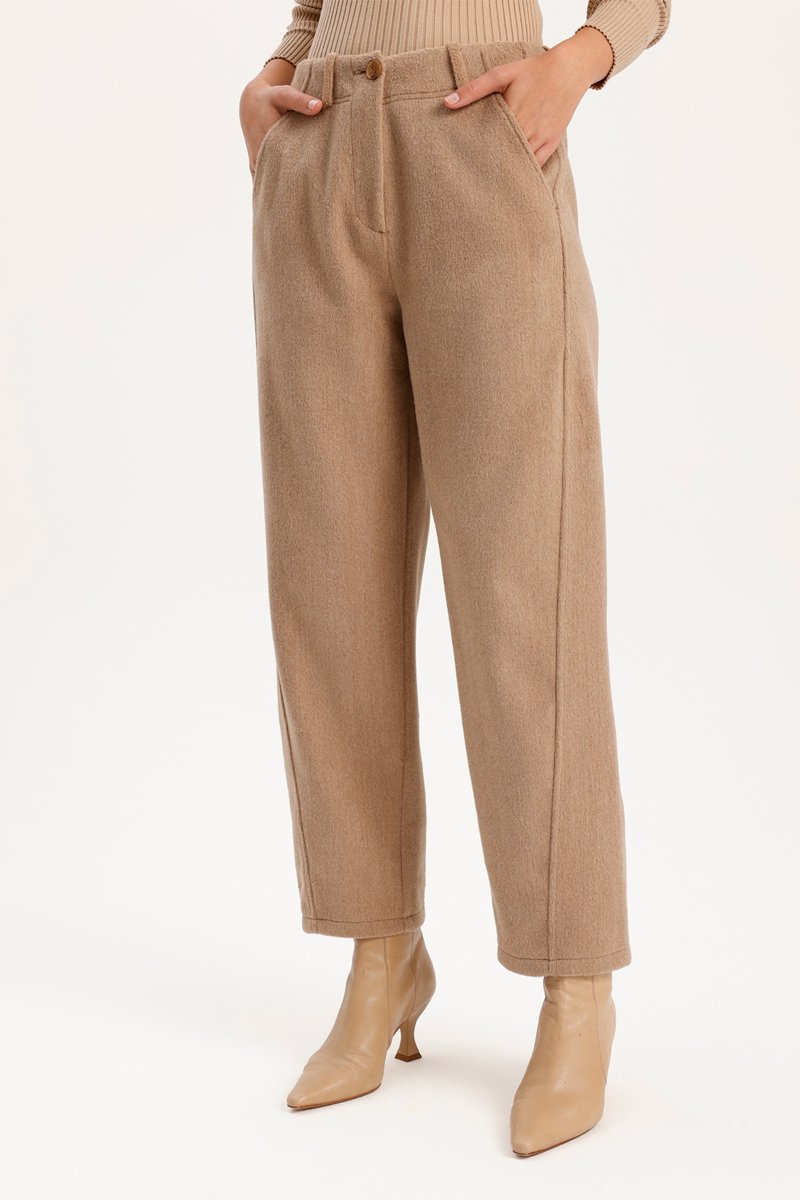 O modelo mede 1,79 m e veste o artigo no tamanho 36.