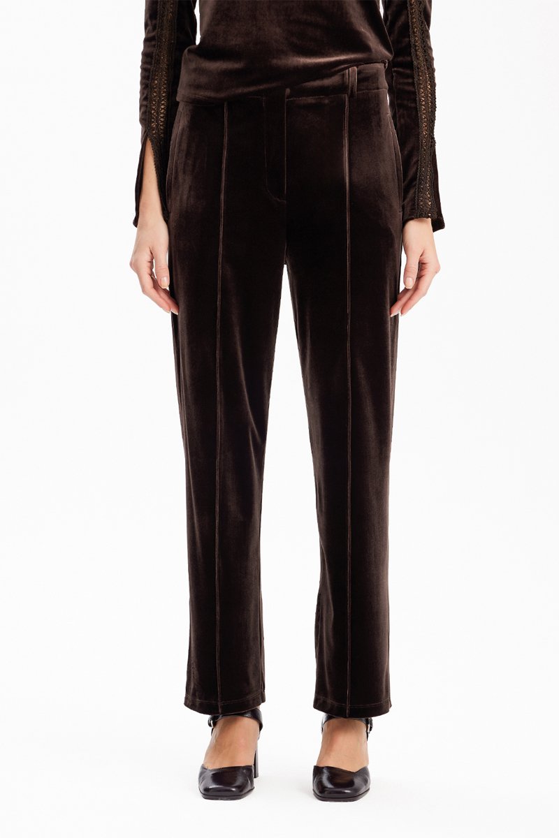 Calças straight leg em veludo - Castanho