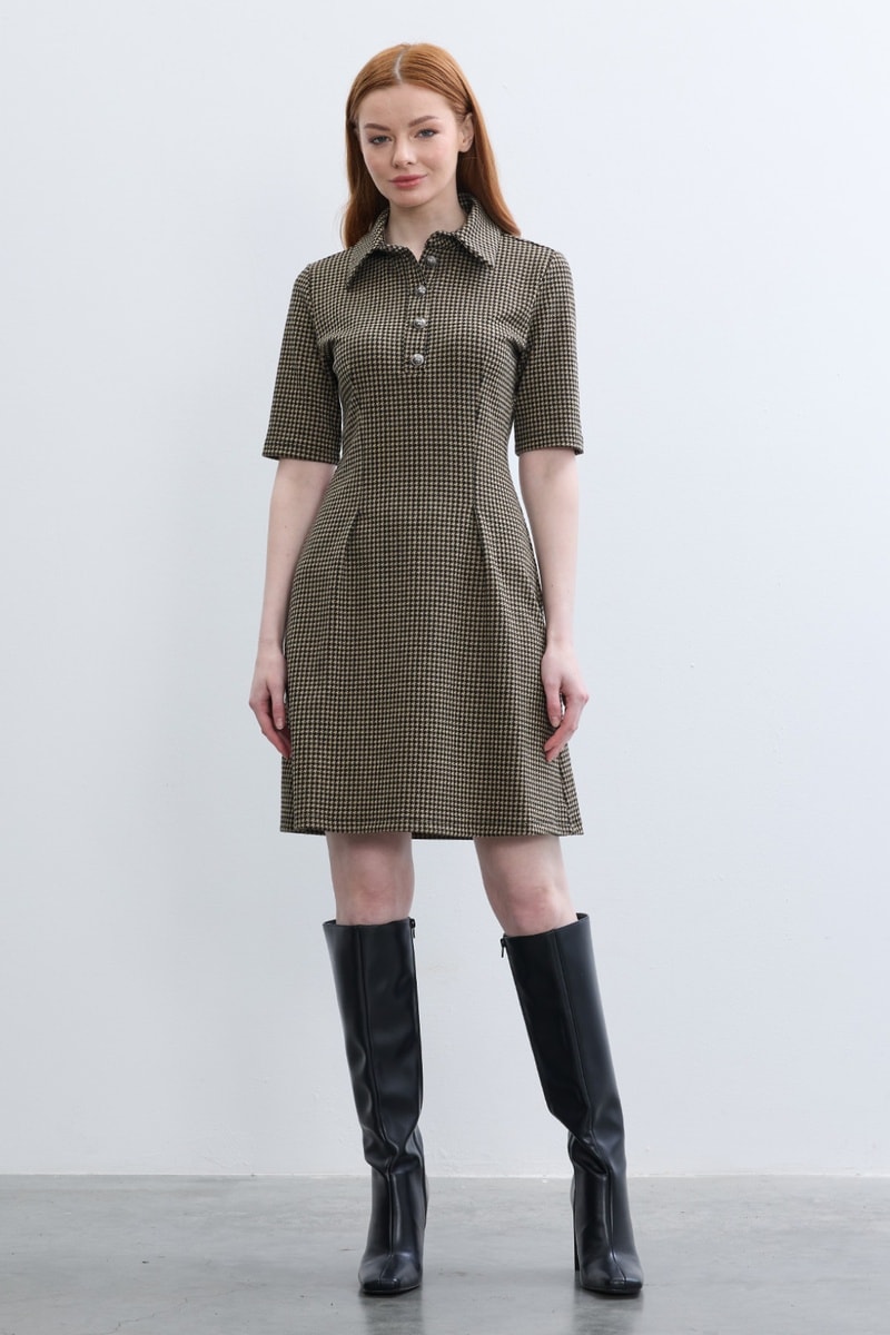 Vestido curto de mangas curtas.