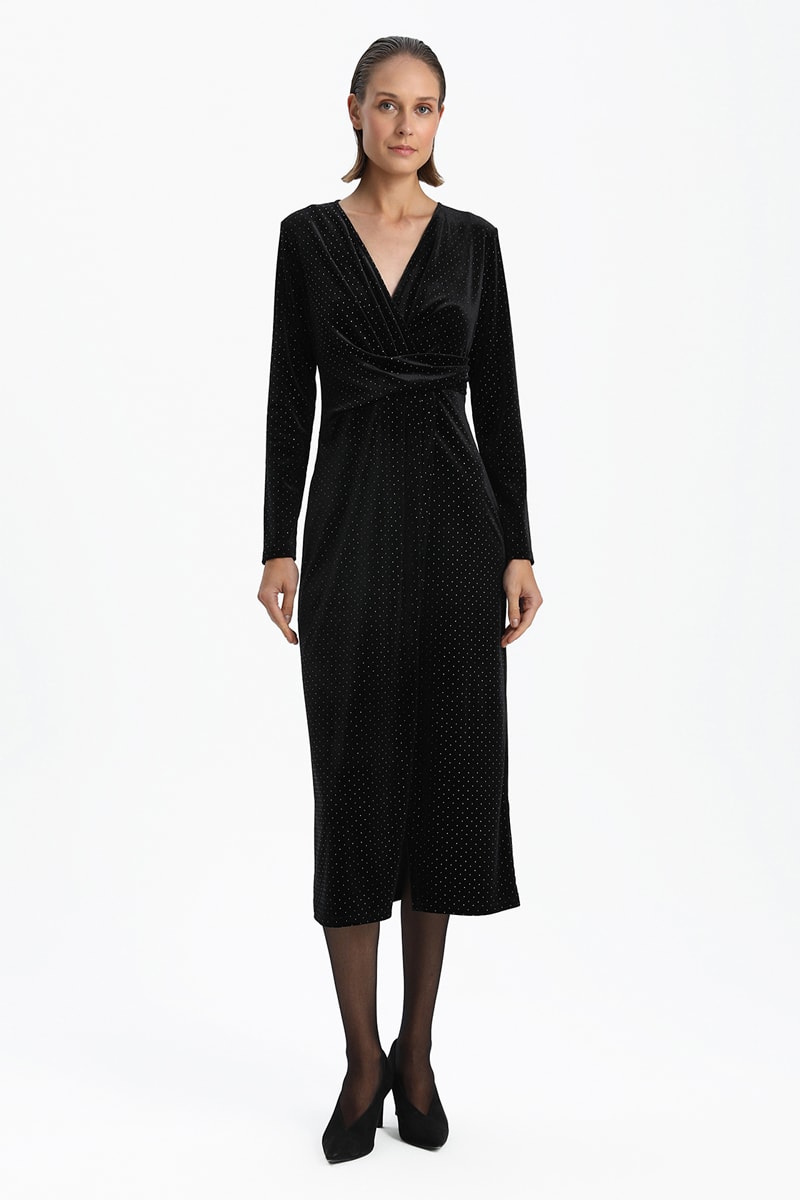Vestido direito em veludo - Preto