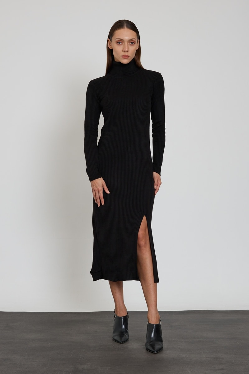Vestido midi de mangas compridas.