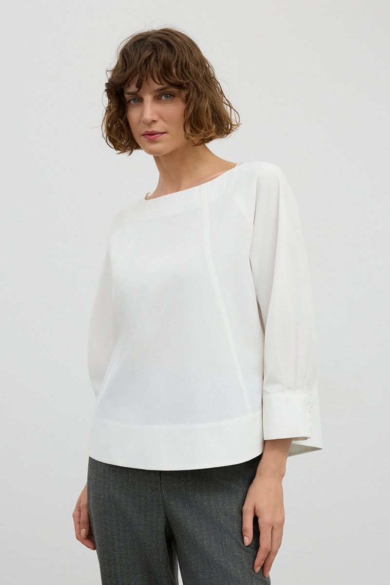 Blusa de mangas 3/4 raglã abotoáveis.