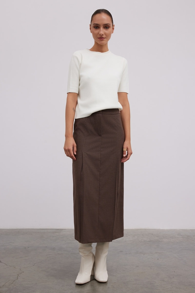 O modelo mede 177 cm e veste o artigo no tamanho 36.