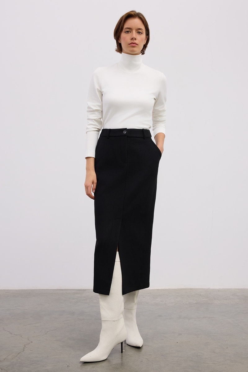 O modelo mede 177 cm e veste o artigo no tamanho 36.
