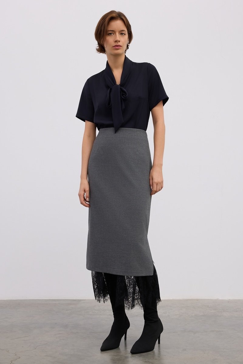 O modelo mede 177 cm e veste o artigo no tamanho 36.