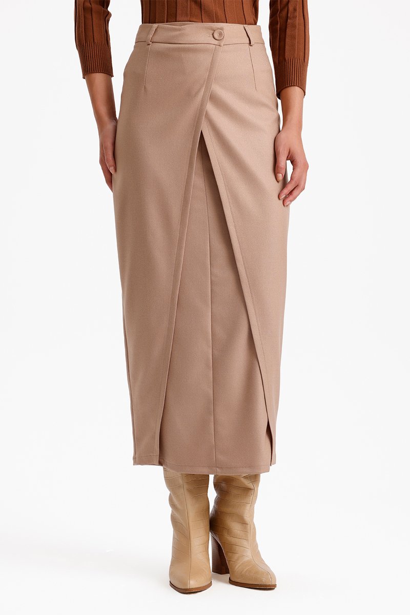 O modelo mede 1,79 m e veste o artigo no tamanho 36.