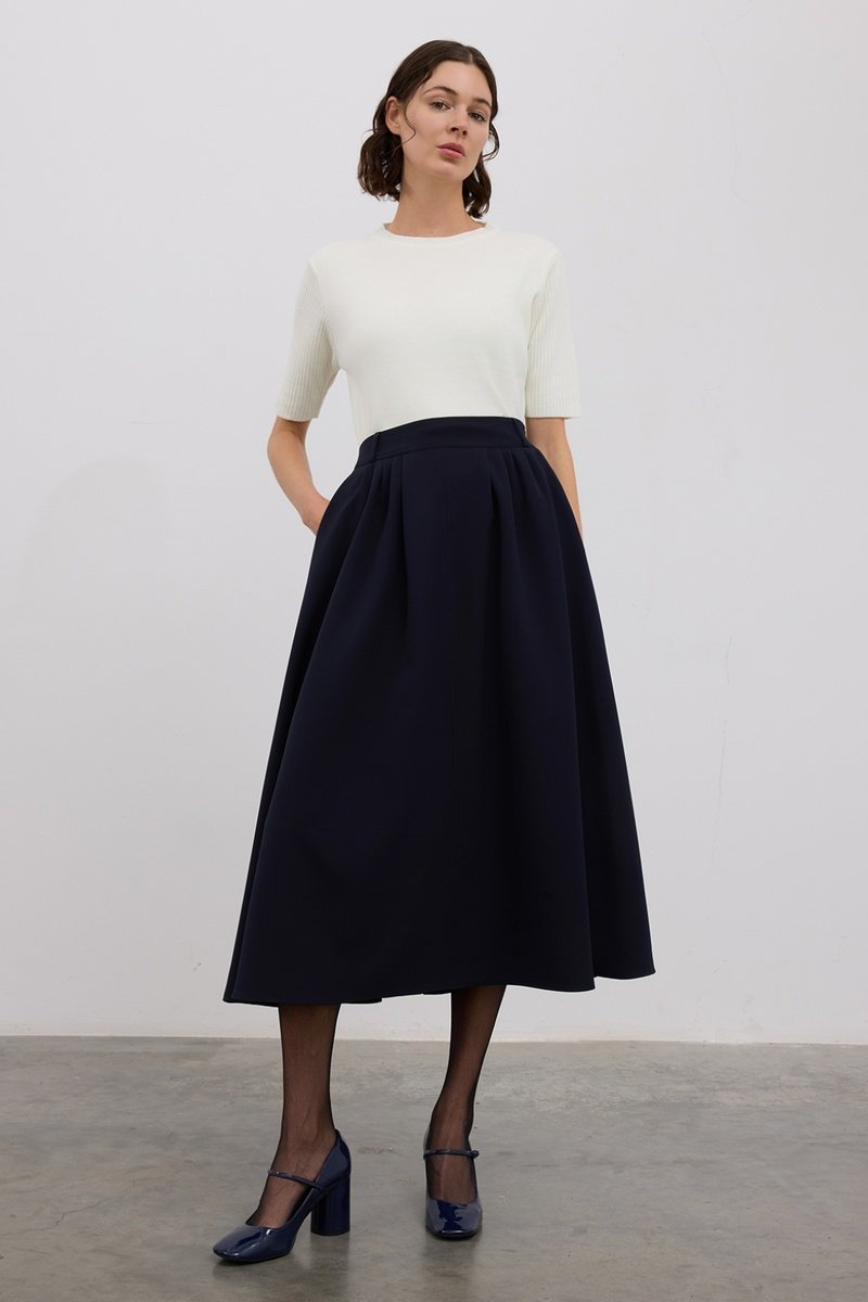 Saia midi - Azul-marinho