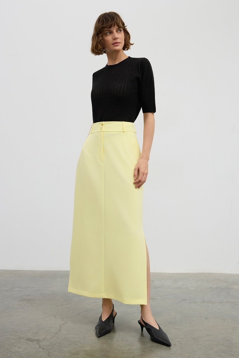 Saia midi - Amarelo-pálido