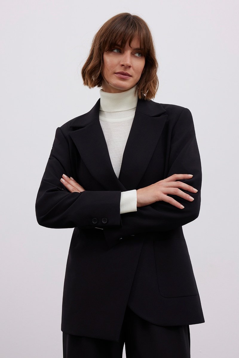 O modelo mede 177 cm e veste o artigo no tamanho 36.
