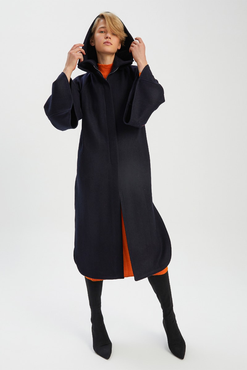 Sobretudo com capuz - Azul-marinho