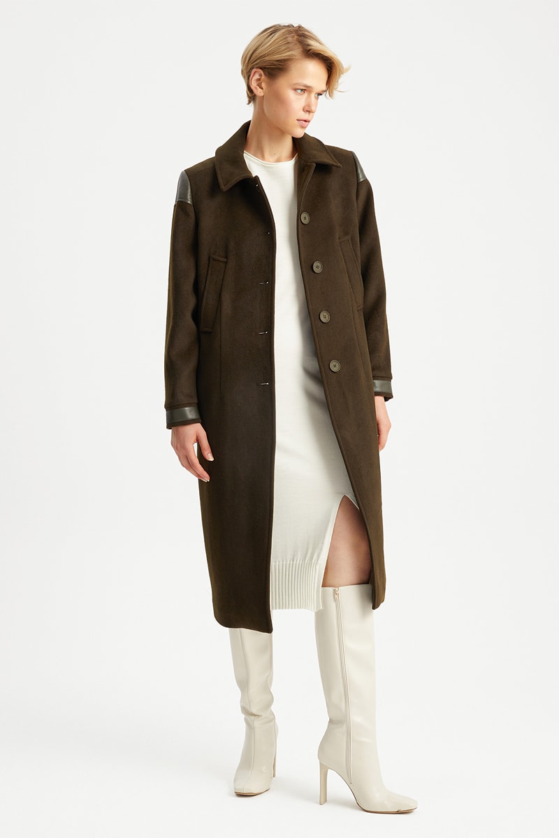 Sobretudo de lã - Caqui-escuro