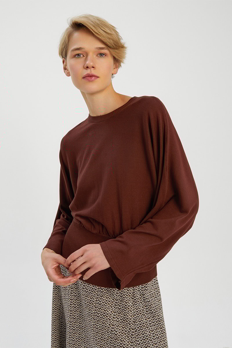 Camisola de mangas compridas estilo morcego.