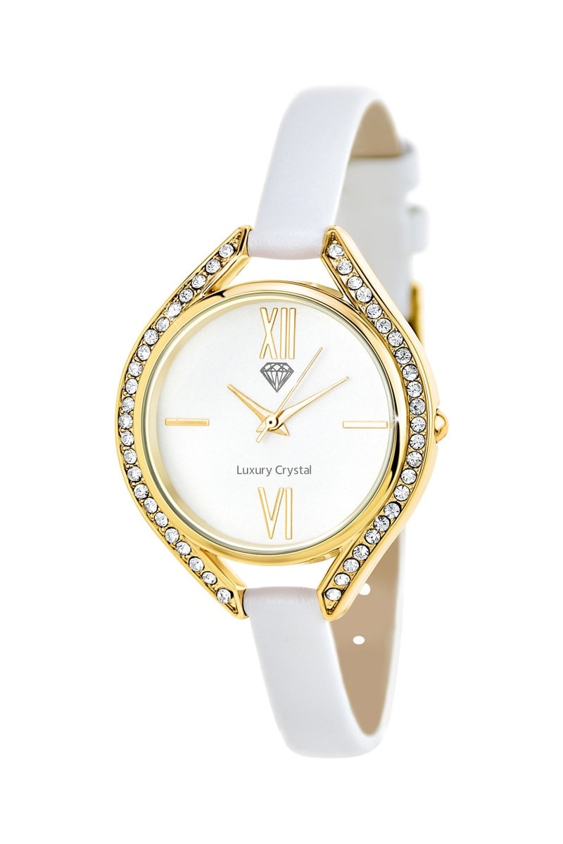 Relógio de quartzo em couro - Branco e dourado