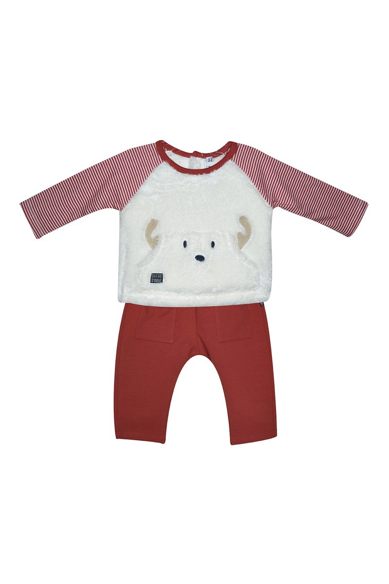 T-shirt e calças - Branco e vermelho-tijolo - Branco, bege, vermelho e azul