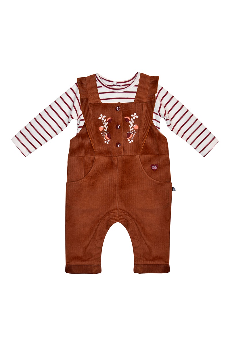 Jardineiras e t-shirt - Castanho e branco - Branco e castanho