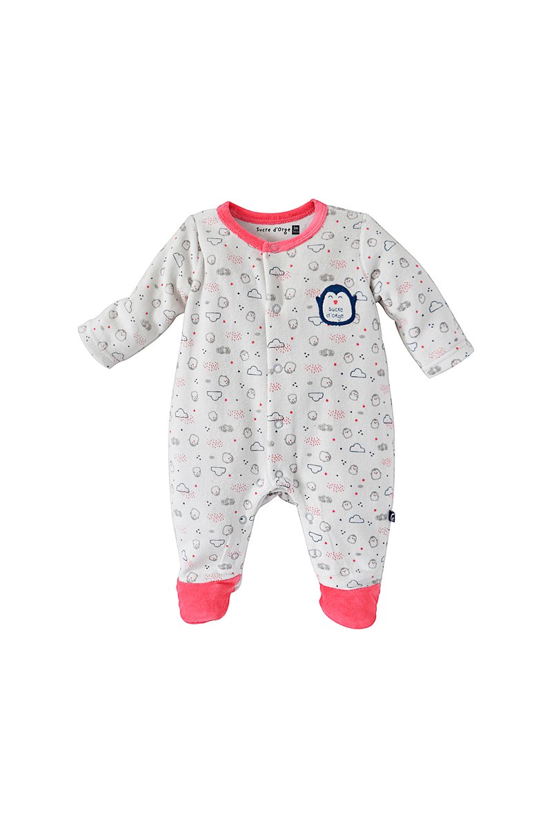 Babygro em veludo Daisie - Branco e fúcsia - Branco e rosa