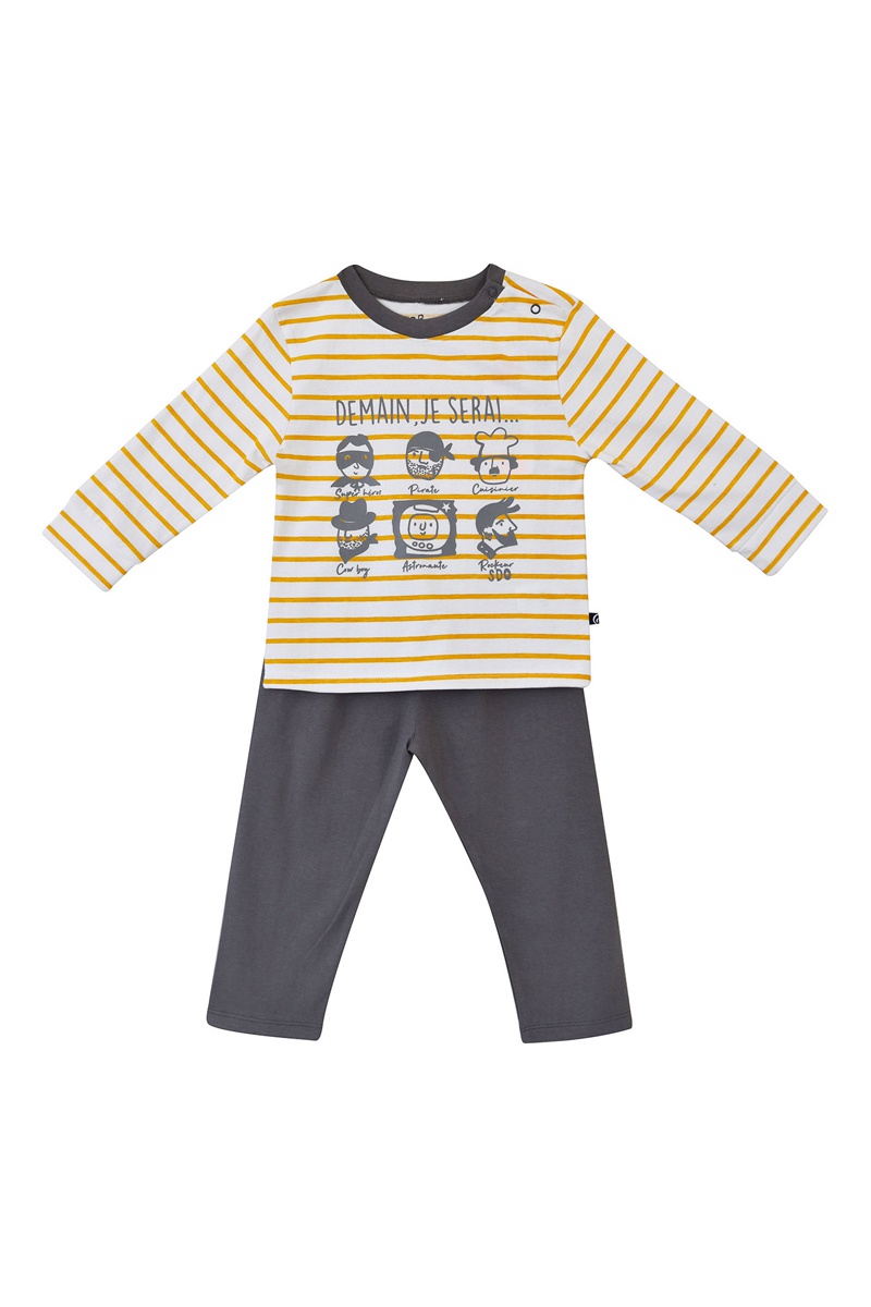 Pijama Esperidion - Cinzento e amarelo - Branco, amarelo e cinzento