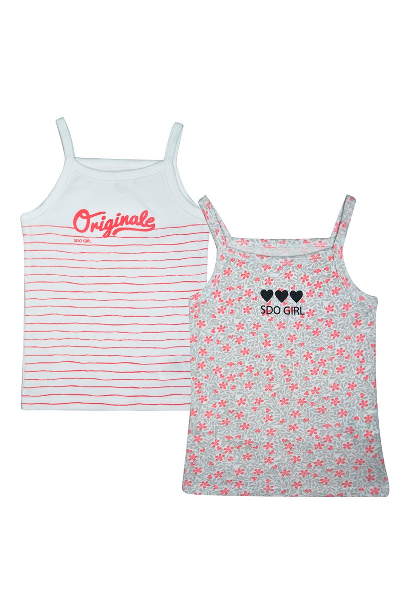 2 camisolas de alças Eufrasia - Branco e cinzento - Branco, rosa e cinzento