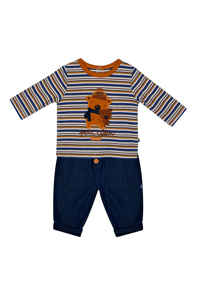 T-shirt e calças - Azul e castanho - Azul e castanho