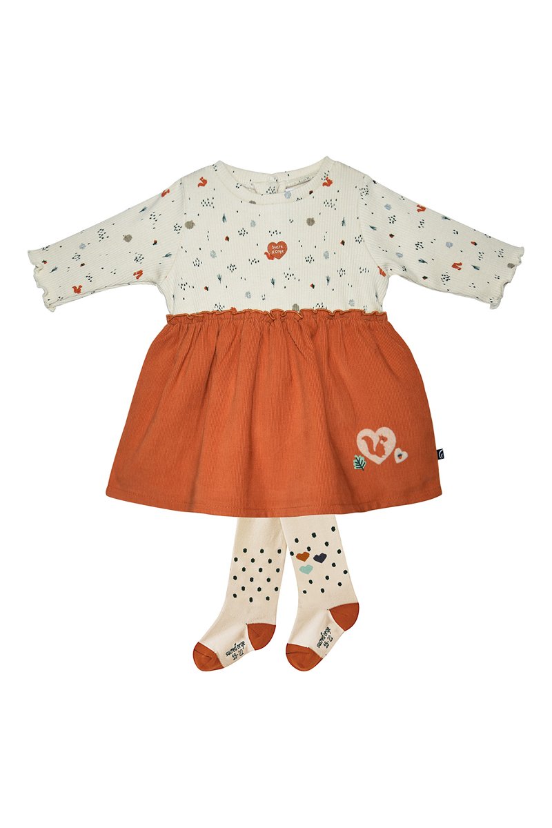 Vestido e collants Isadora - Caramelo e branco - Branco e castanho