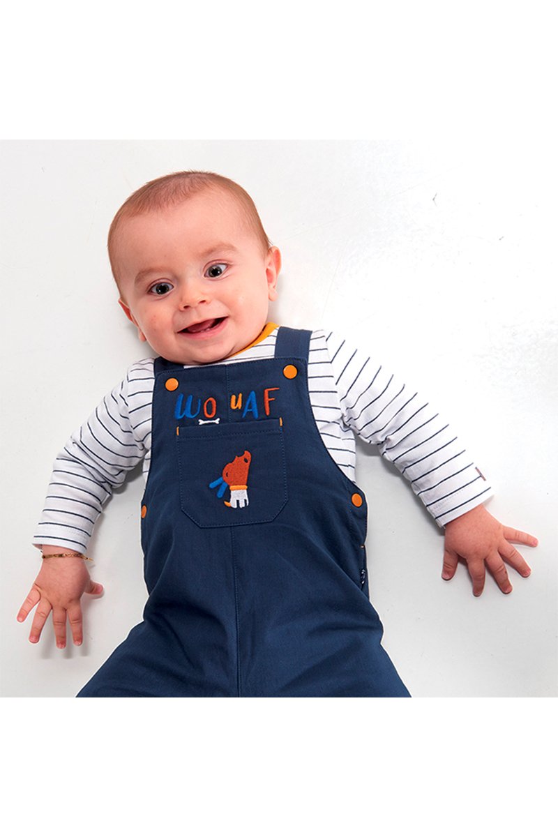 Jardineiras e t-shirt - Azul - Branco, azul e cinzento