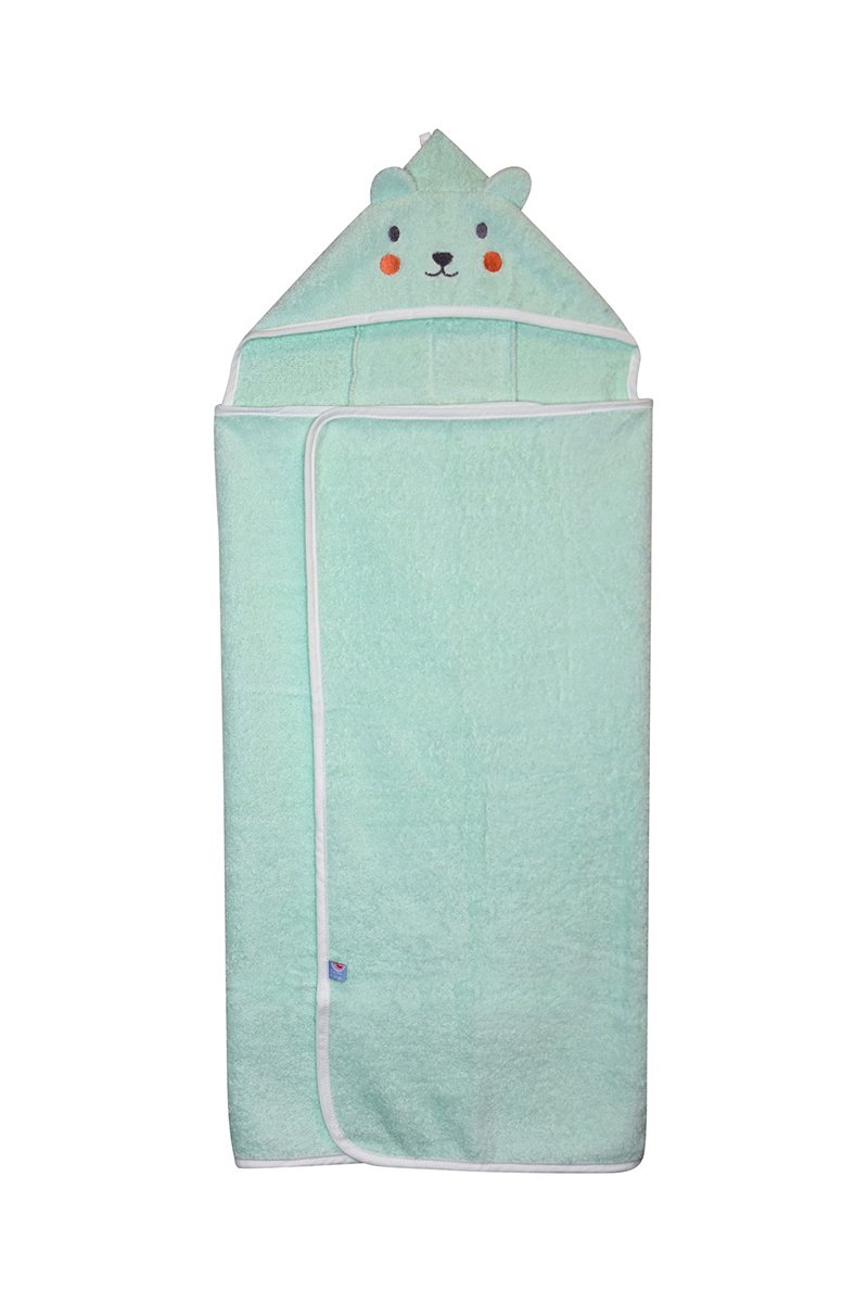 Capa de banho com capuz, estampado decorativo bordado e orelhas.