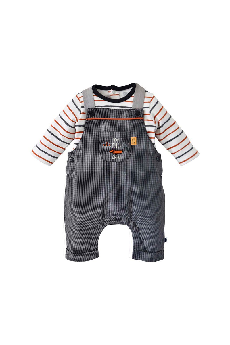 Jardineira e t-shirt Boris - Antracite e branco - Branco e cinzento