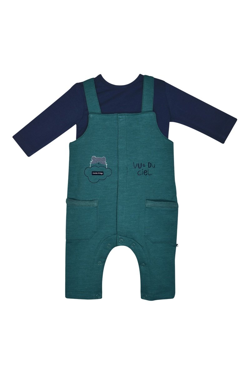 Jardineiras e t-shirt - Verde e azul-marinho - Verde