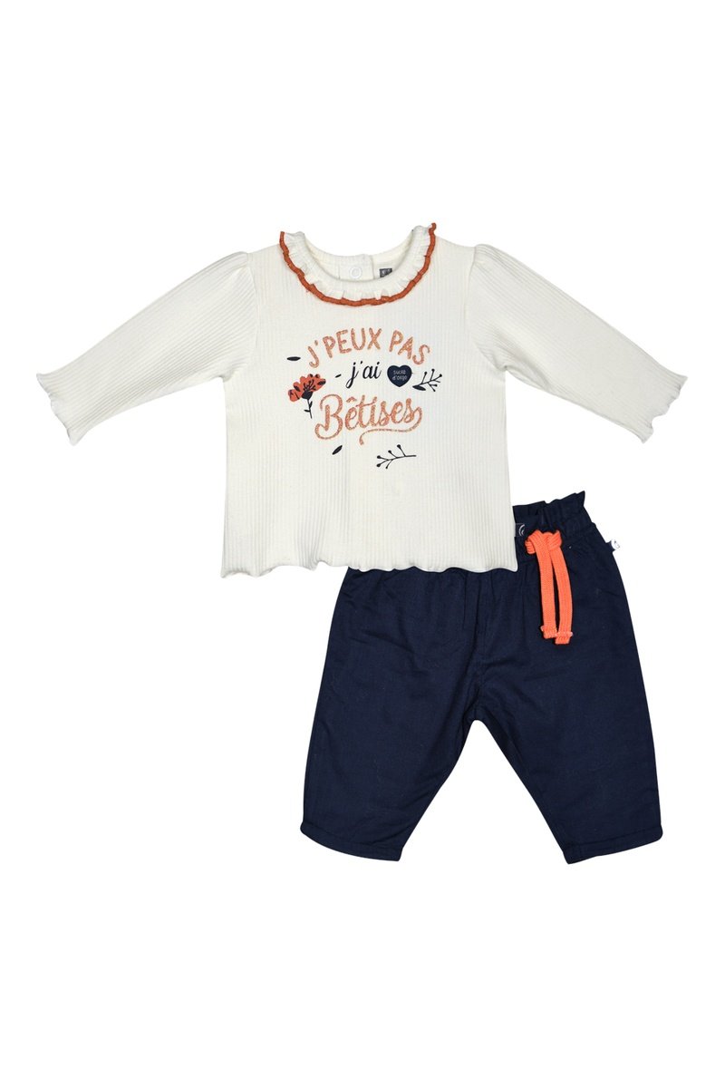T-shirt e calças - Cru e azul-marinho - Branco