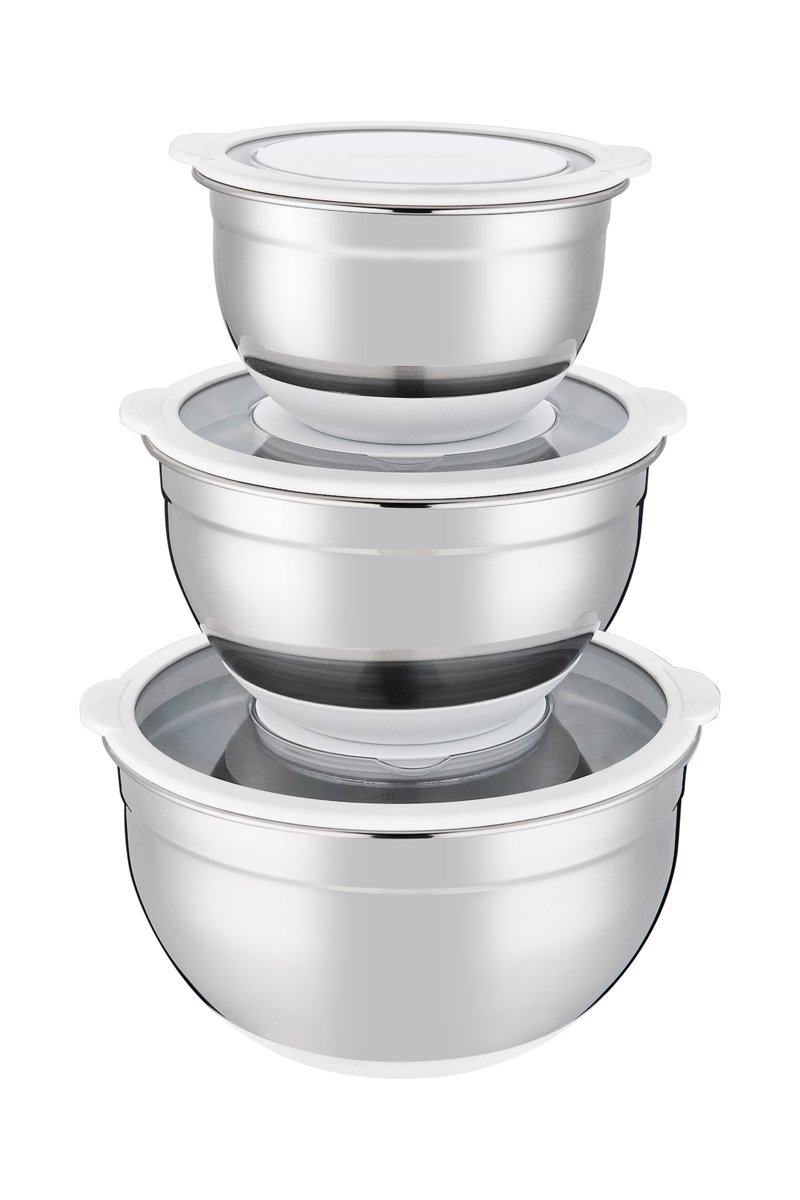 3 saladeiras de aço inoxidável com tampa - 16 / 20 / 24 cm