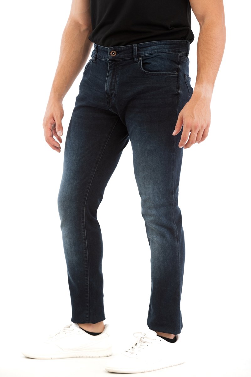 Calças de ganga corte cenoura.