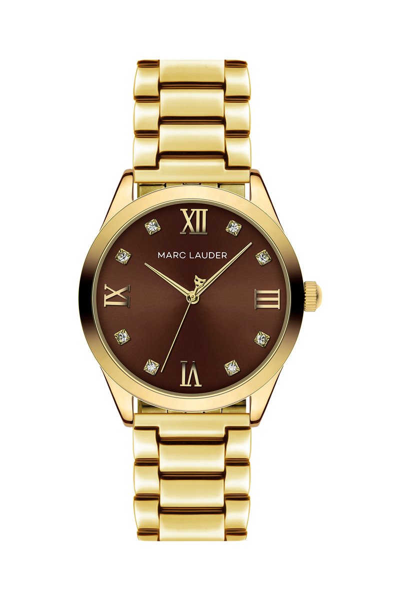 Relógio de quartzo em aço e zircões Marrakech - Dourado e castanho